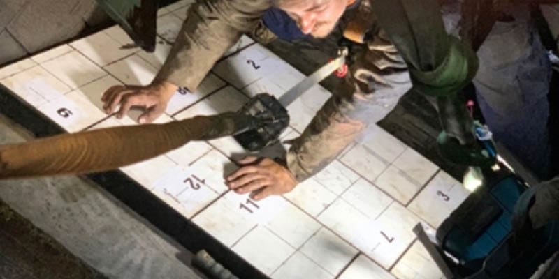 Elastotec Magnefast Ceramic Wear Panels were chosen for the application in this colliery transfer chute as the use of studded wear panels would have been very difficult and time consuming to install.