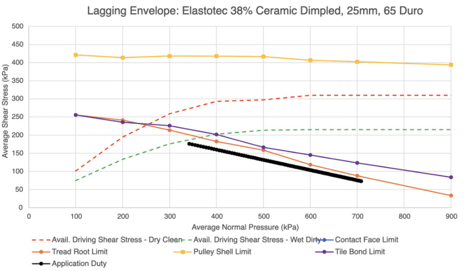 “There is no engineering analysis to help determine if the lagging will tolerate the stresses developed at the interphase of the lagging and belt,” Ballestrin said.