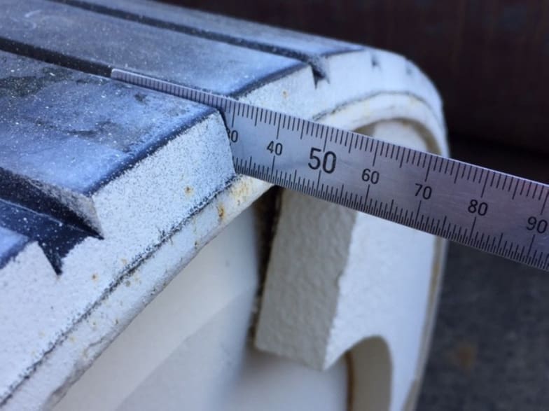With regard to application techniques and workmanship, many lagging applicators use a technique called “butt” lagging where each lagging strip is ‘butted’ up against the previous strip. Depending on the skill and care of the operator, the result can vary from having no gap between strips to having a gap several millimetres wide (see photo #18). It is common for lagging applicators to use liquid sealants such as ‘Sikaflex’ to fill in gaps at the joins – the use of sealants to fill gaps will ensure lagging failure in wet conditions.