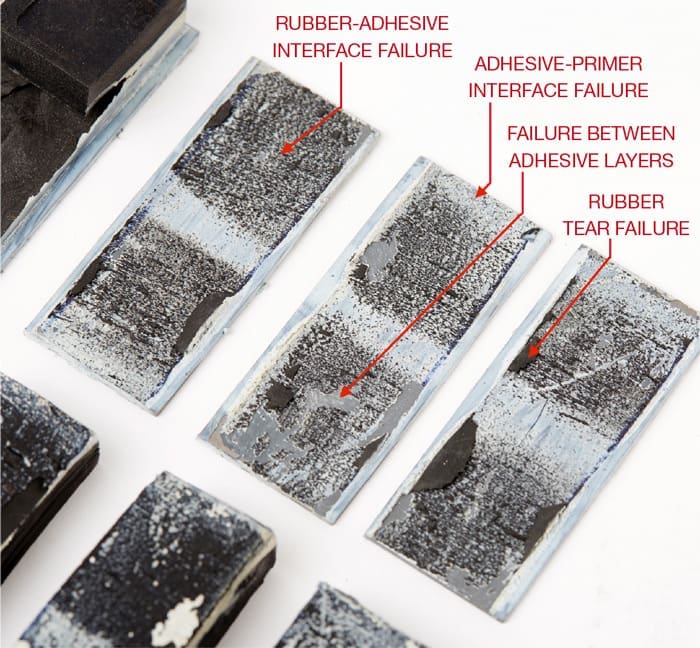 The combination of three bonding system components developed by Elastotec – Elastotec Metal Primer 2205 – Elastotec CV Adhesive – Elastotec CN Bonding Layer – together with the detailed applications instructions and working with approved and supervised applicators, ensures that Elastotec’s Cold Vulcanising adhesion system provides reliable 100% rubber tear bonds that exceed 18 N/mm. (Refer photo #7)