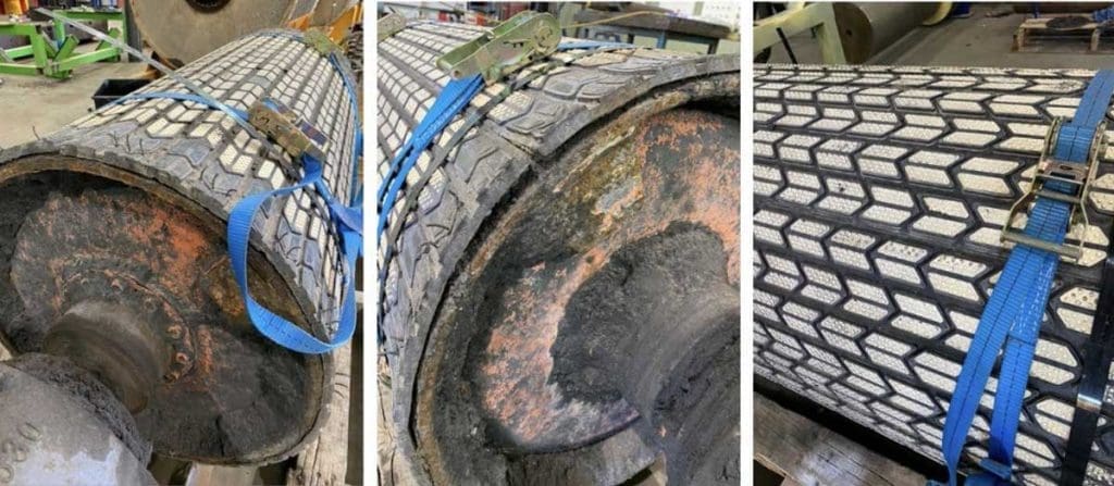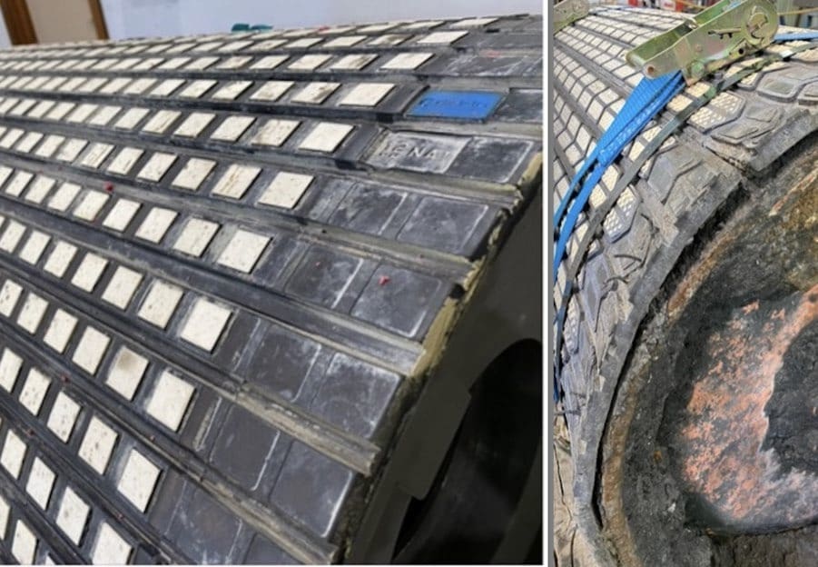 The pulley that has the lagging that can be returned to service was fitted with Elastotec Hot Vulcanised Ceramic Lagging and had been in service since 2017.