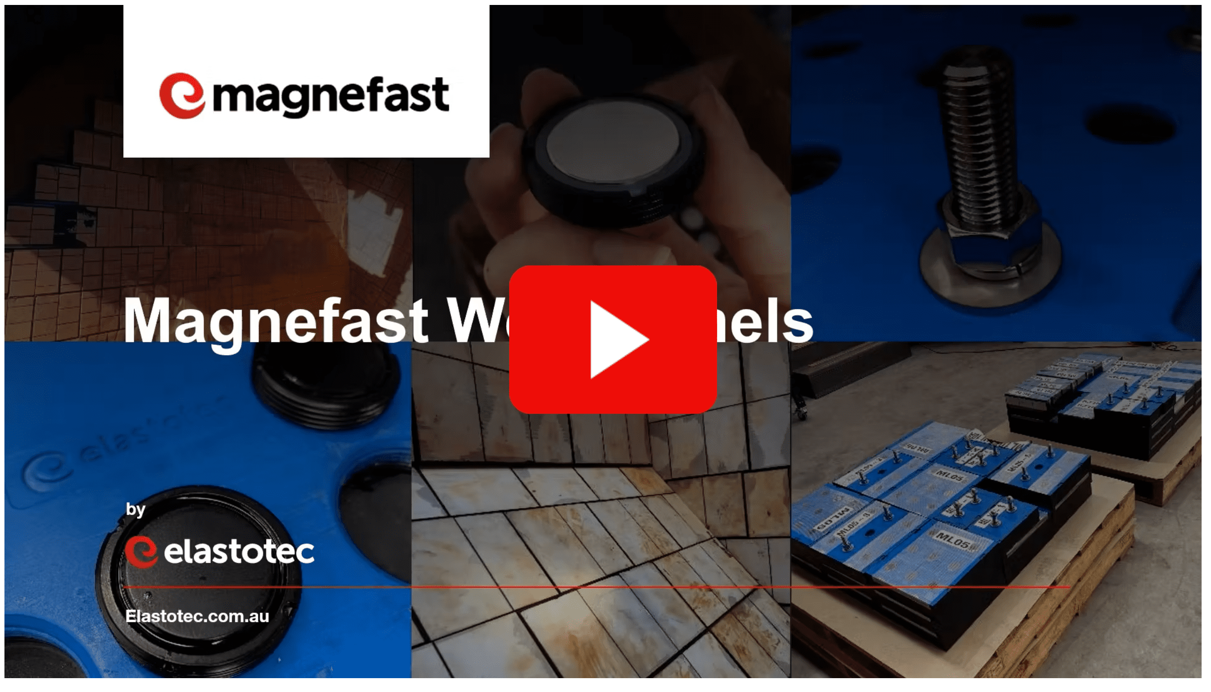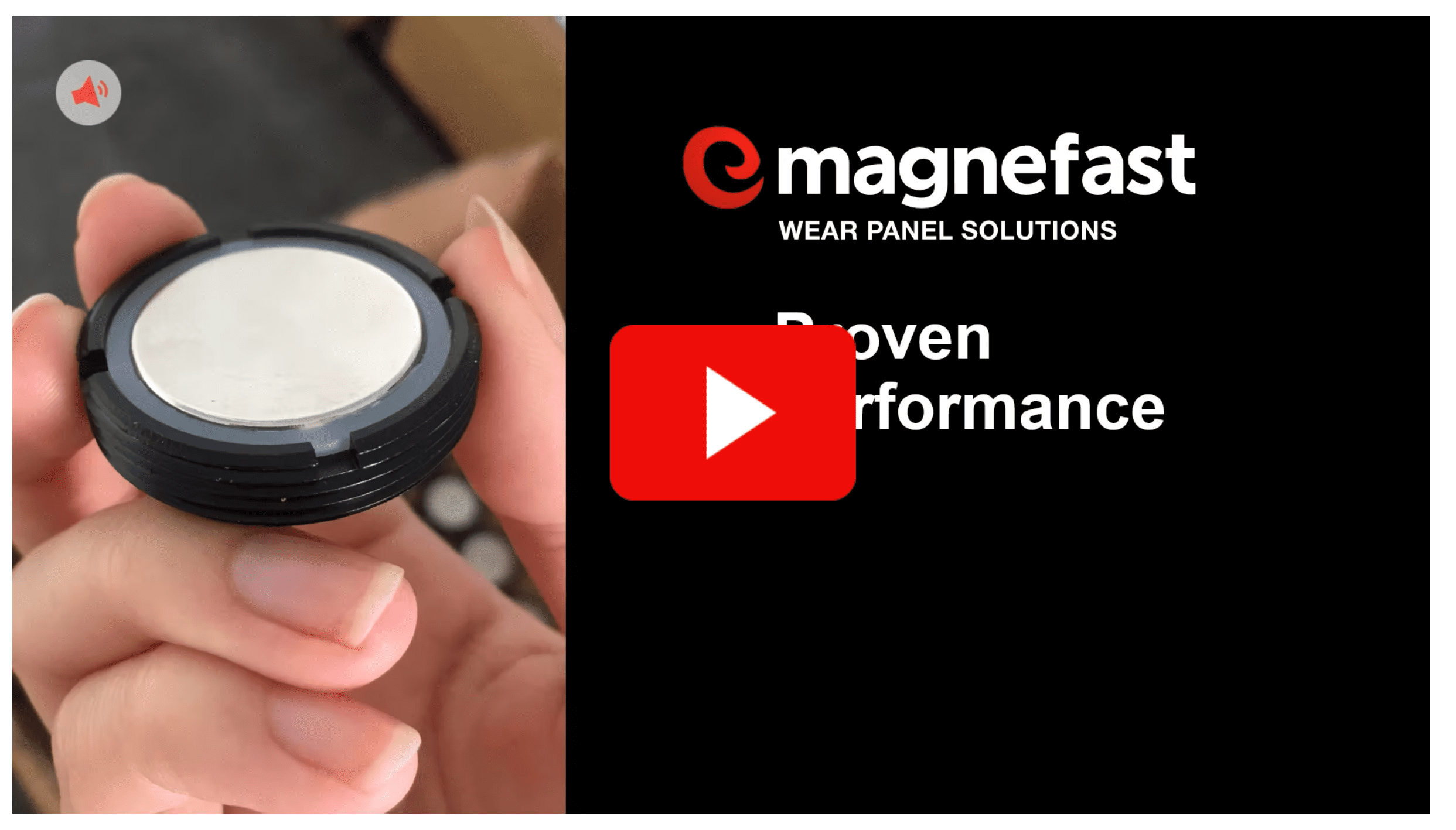 Magnefast is a patented single sided attachment system for wear panels that uses high strength neodymium mag