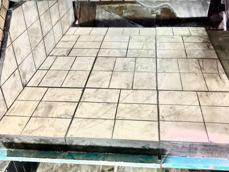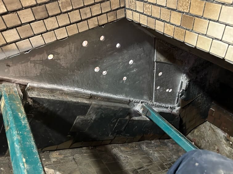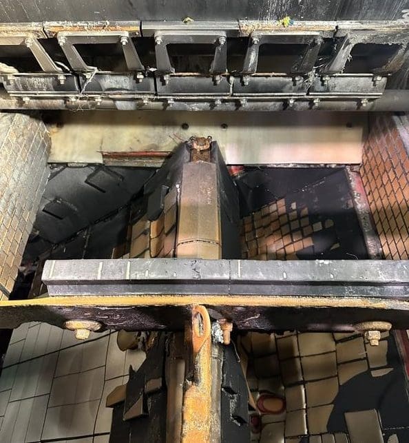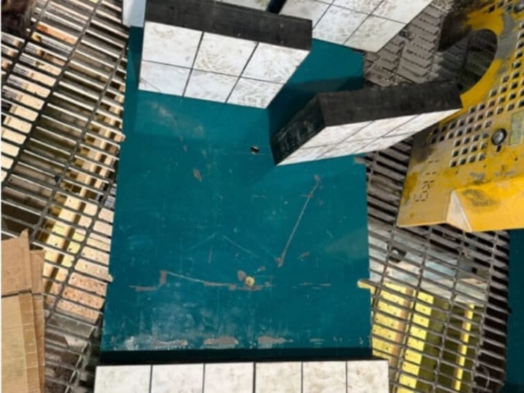In September 2023 a trial installation of the Elastotec Magnefast ceramic wear panels was put in place on a dual deck transfer chute. The existing studded white iron wear liners were replaced with Magnefast ceramic wear liners on the top floor and side wall.