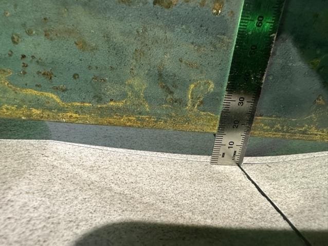 Below photo shows the lower floor white iron worn through into the rubber lining and into the chute substrate.