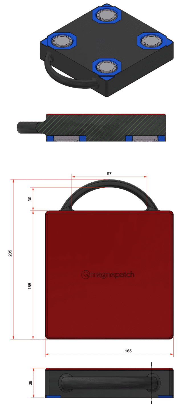 - Recessed lugs on each side allow removal of the Magnepatch with a small pry bar