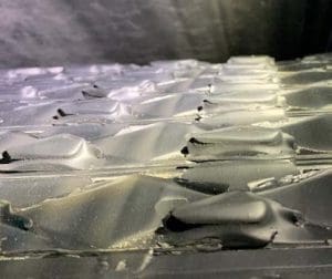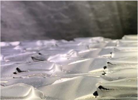 Repeated pulley lagging failures had been observed on the drive and non-drive high-tension bend pulleys. A few common observations were debonding of the lagging from the pulley shell (as shown in Figure 1). Belt cover wear (as shown in Figure 2) and lagging fatigue failure (as shown in Figure 3). Unplanned lagging replacement due to failure may lead to major financial loss in production output and belt damage.