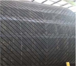 Elastotec and Conveyor Dynamics started a project to analyse the root cause of this failure and found out that the reason for this failure was excessive stresses developed in the lagging, which crossed the fatigue limit at the tread root location. It can be seen in Figure 9 that the lagging was damaged from the tread root location. The current Lagging Select tool has been developed based on the analysis methodology evolved in this case study. The analysis has not only identified the root cause of failure but also suggested the best suitable lagging for the upgraded conveyor design parameters. Figures 10 and 11 show the lagging failure and its corresponding envelope, and Figures 12 and 13 show the grooved Herringbone pattern lagging and its envelope.