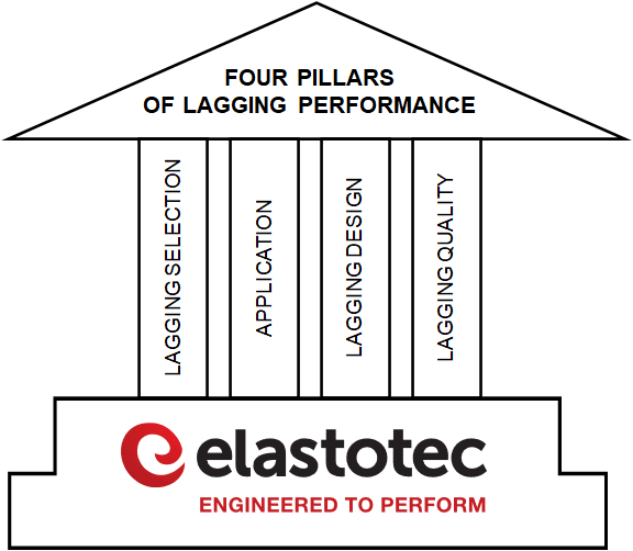 At Elastotec, we believe pulley lagging is an engineered part of the pulley and when chosen, manufactured and installed correctly, should last longer than the bearings and locking elements. When working with you to optimise your operations, we look at the four pillars of lagging performance: